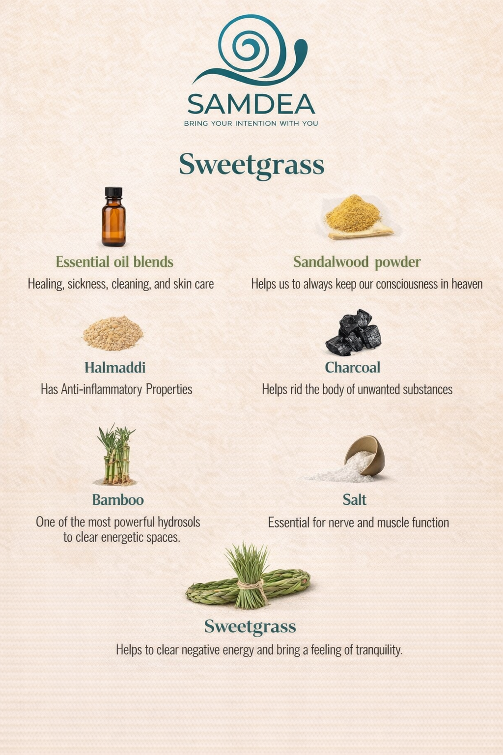 Sweetgrass: Un soffio di positività dolce e terroso.