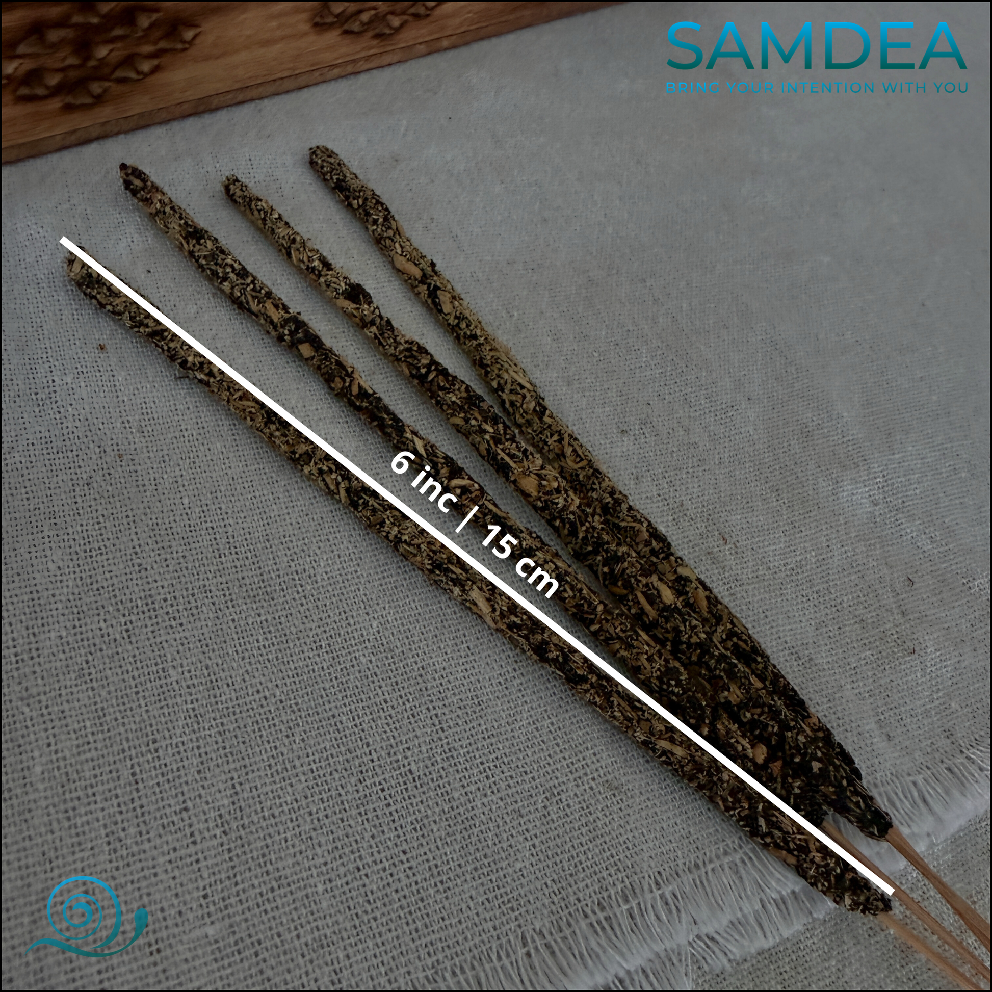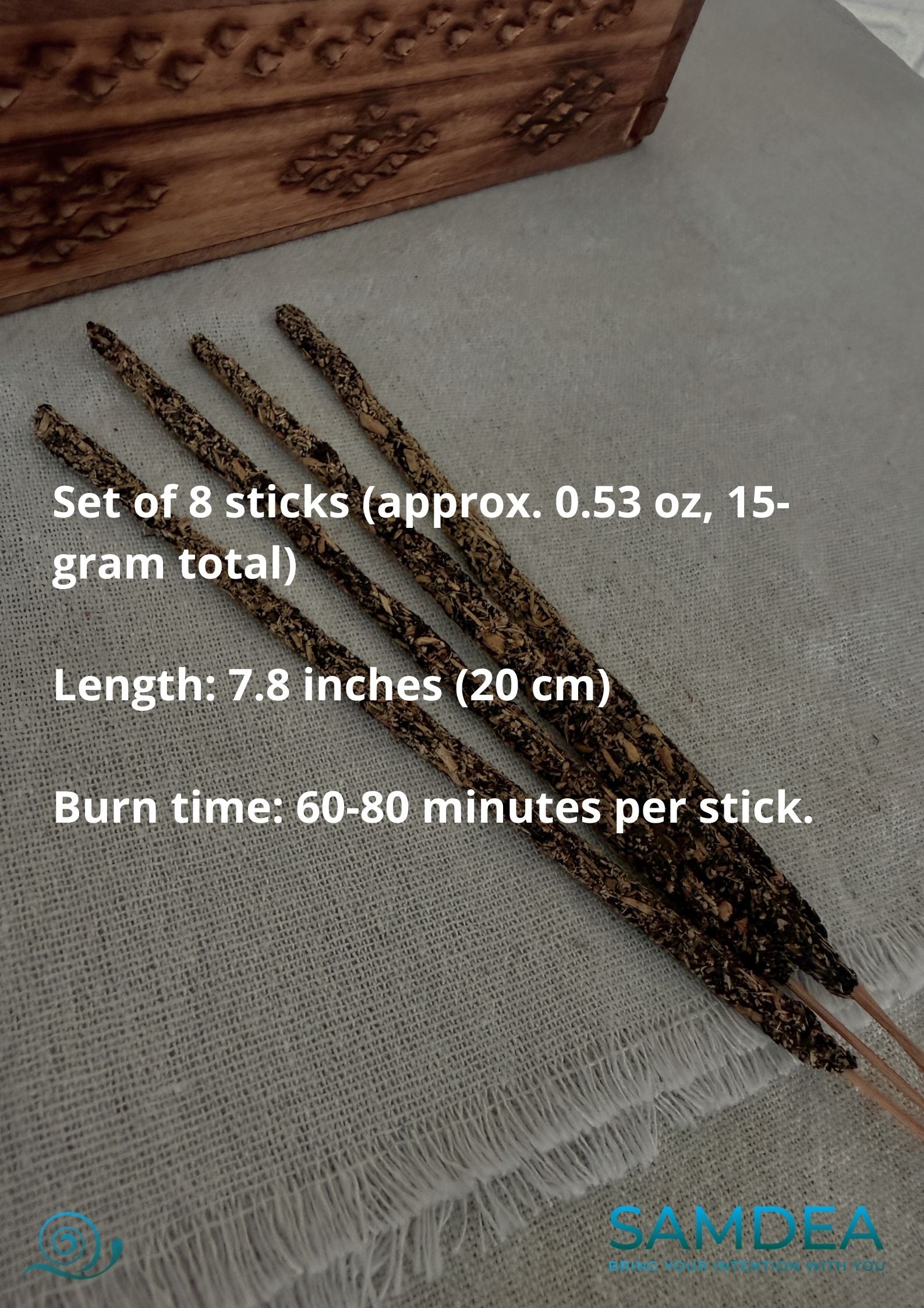 Rituale prolungato: bruciando per almeno 60-80 minuti, questi bastoncini forniscono uno scudo aromatico di lunga durata.