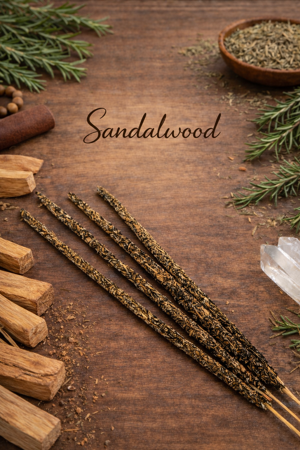 Sandalo: un legno cremoso e sacro che dona stabilità e saggezza antica.