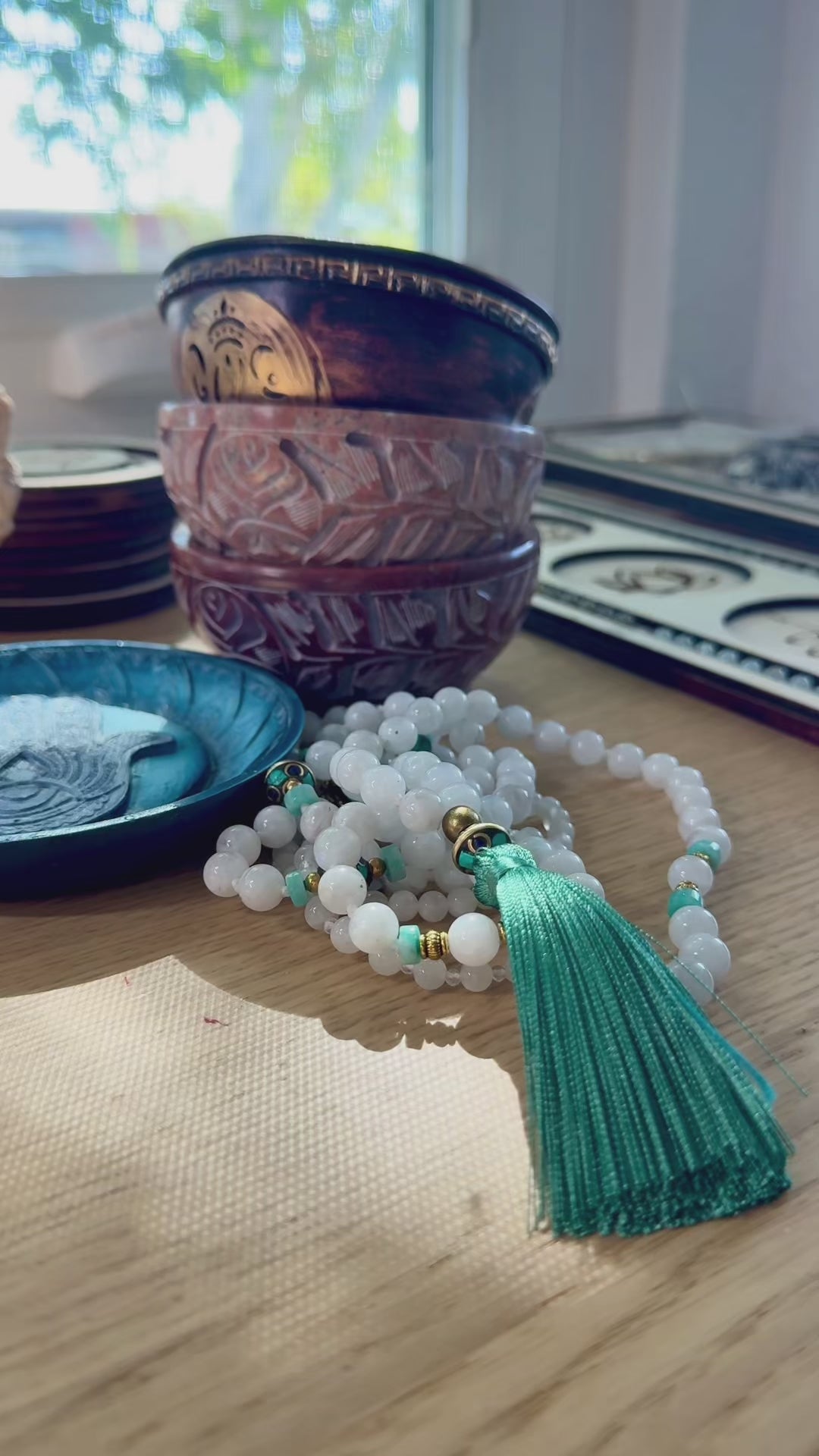 Together, these stones help awaken the heart, soothe the nervous system, and reconnect you with your natural rhythm — making this mala the perfect companion for women on a path of self-discovery and inner growth.