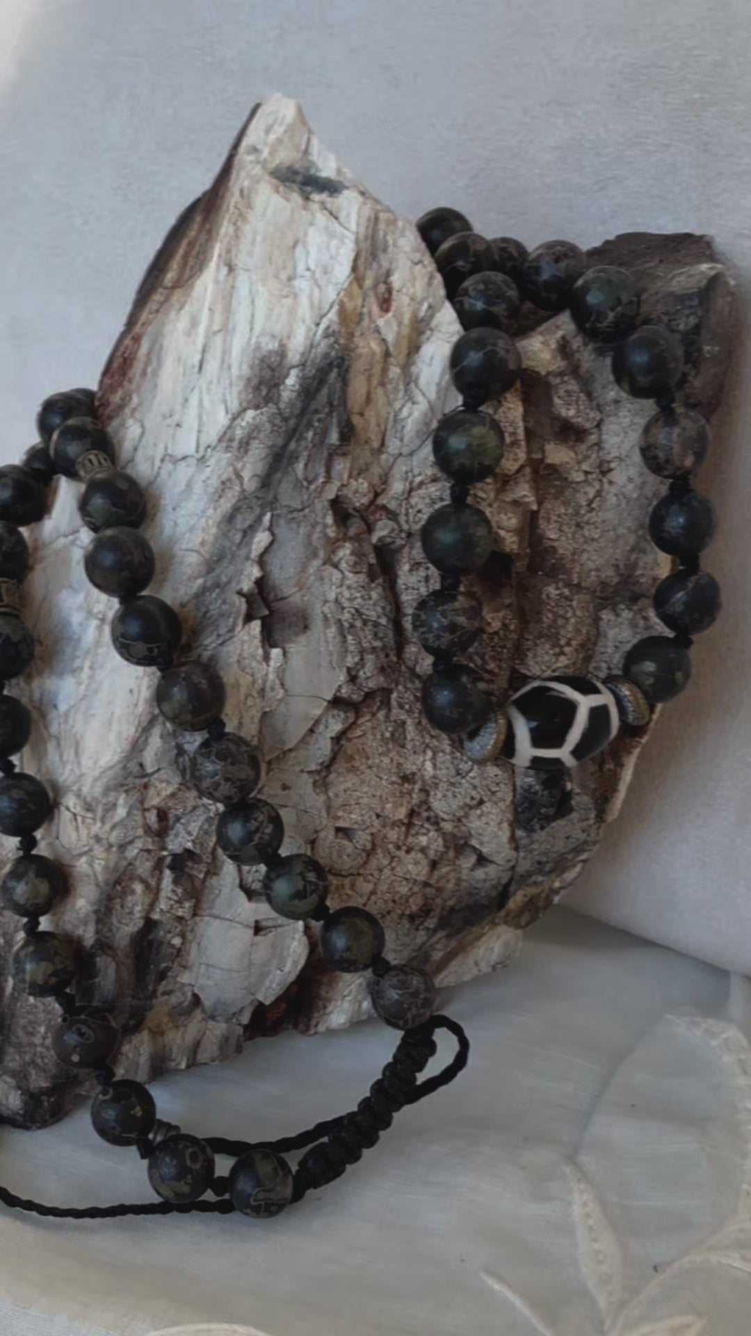 Half Mala & Wrap Bracelet in Natural Plum Blossom Jade – Handmade Mala Necklace for Emotional Harmony & Protection