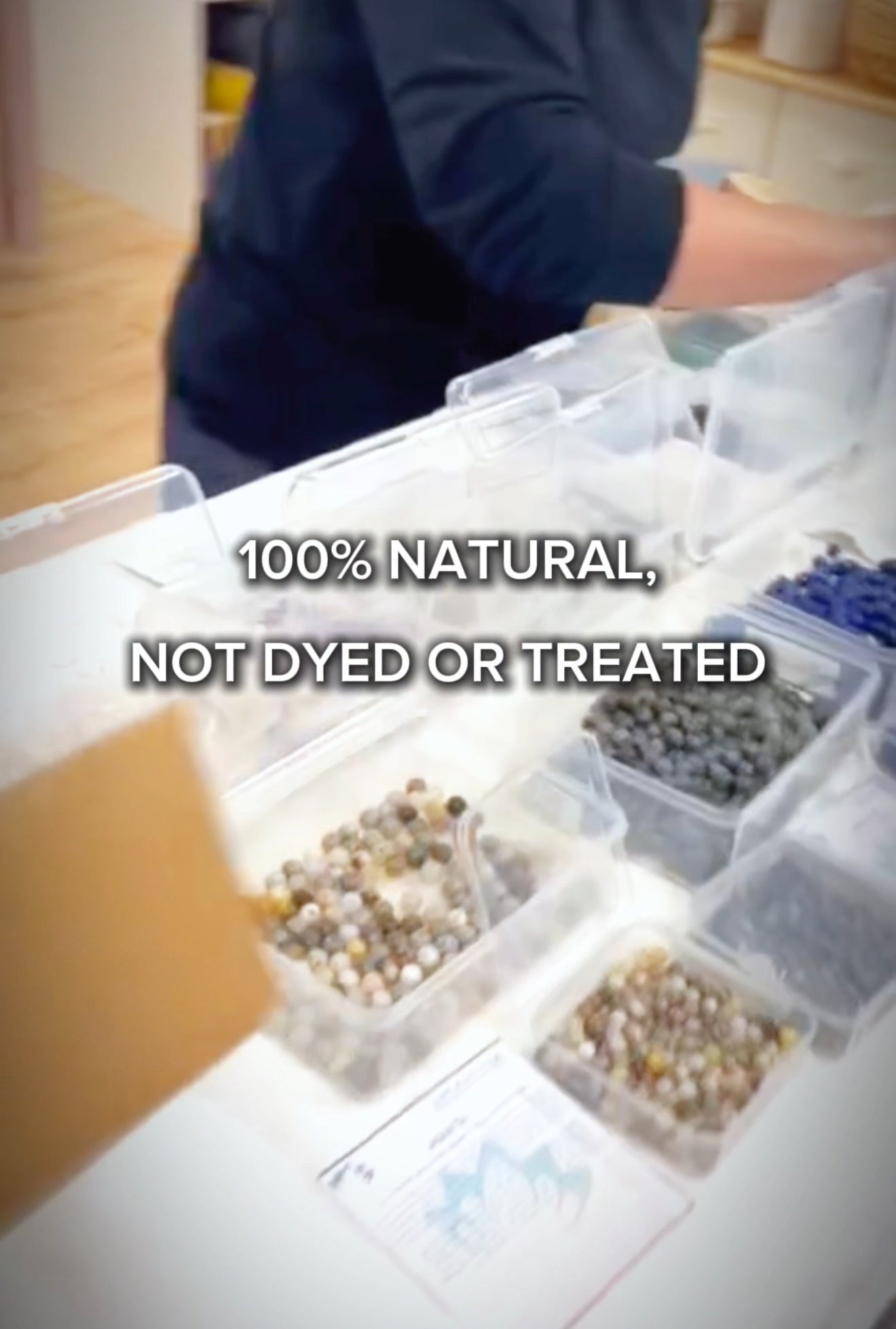 – 2 strands of 8 mm gemstone beads (approx. 120 beads total) – over 40 gemstone options available